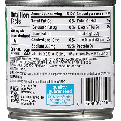 Food Club Mushrooms Sliced 4oz is backordered and will ship as soon as it is back in stock.