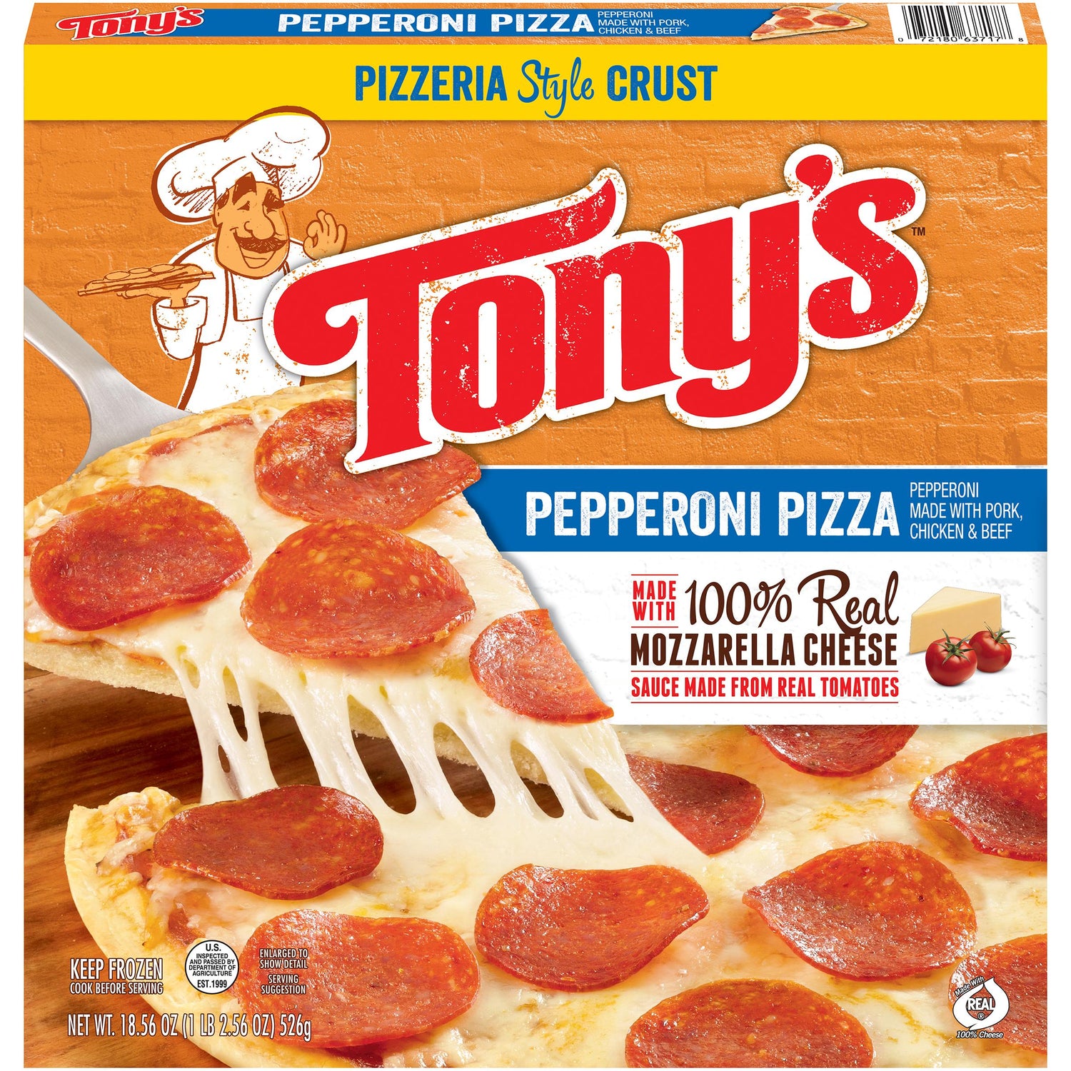 TONY'S Pizzeria Style Pepperoni Pizza packs that classic pepperoni punch you love. It?s everything you crave. And more. Taste a pepperoni pizza for the ages. This variety of TONY'S Pizzeria Style Pizza delivers the classic flavor you want from your pizza. With crispy, crunchy crust, sauce from real tomatoes and real cheese, it?s everything you crave. And more. It starts with layers of light, crispy, crunchy crust topped with sauce made from real tomatoes. Then we cover it in real cheese and all your favorite toppings.