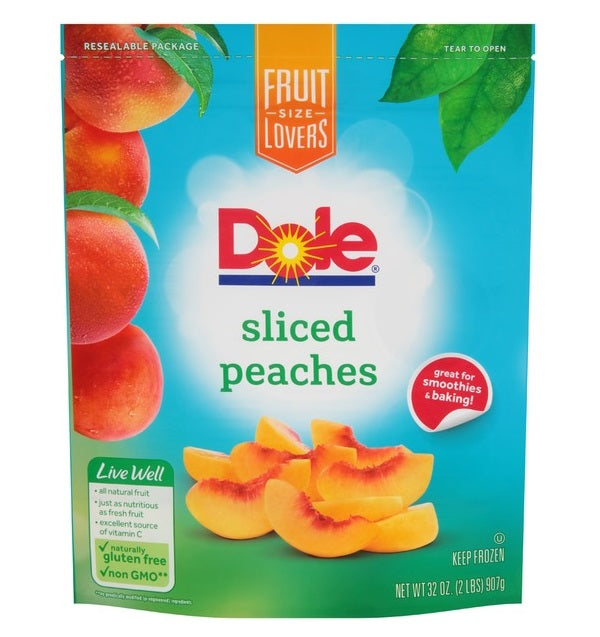Sliced peachesDole® Peaches are hand-picked at peak ripeness to ensure you're getting only the finest fruit available. Each fruit is carefully washed, cut and quickly fresh-frozen after harvest to lock in the natural flavor and nutrition. The result is great-tasting fruit that is just as nutritious as fresh and available all year long.