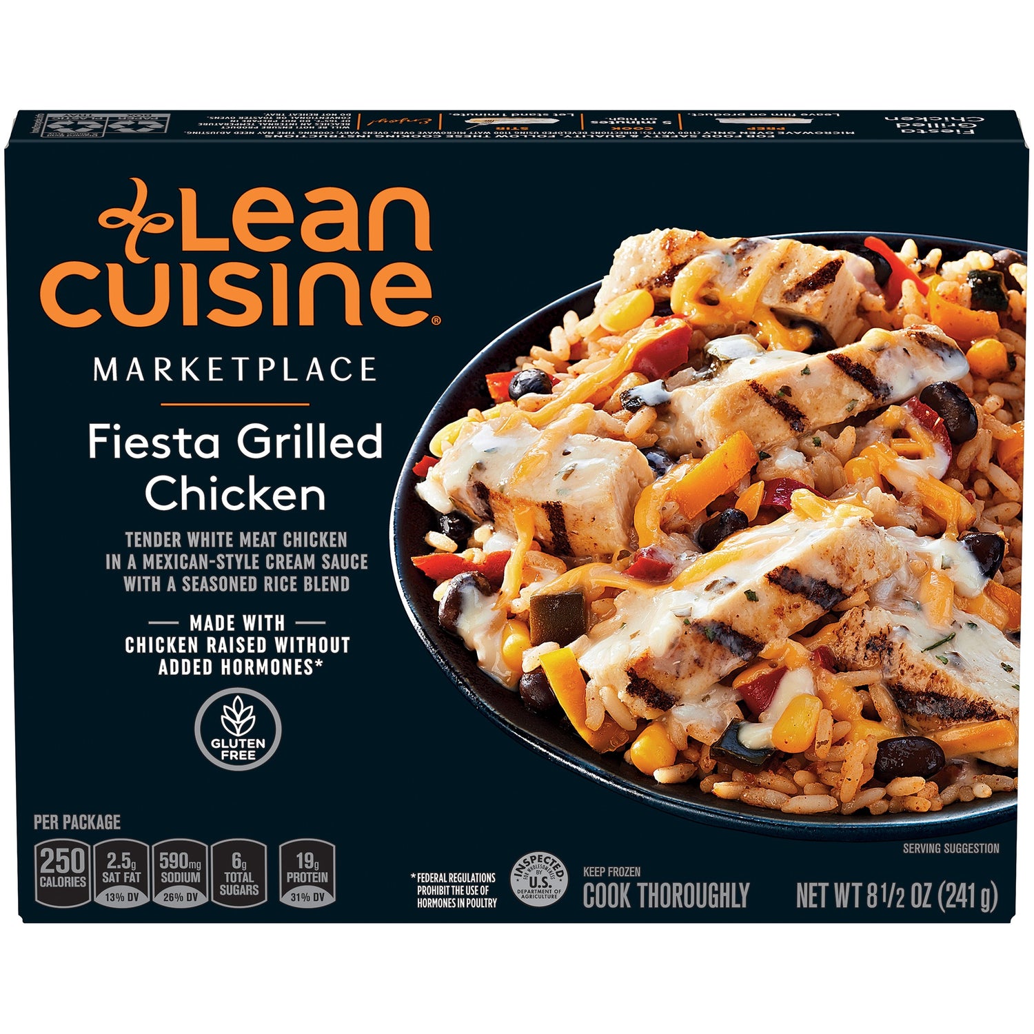Tender white meat chicken, lightly seasoned rice, black beans and vegetables in a delicious Mexican-style cream sauce. Let your taste buds cross the border and feed your phenomenal with Lean Cuisine's Fiesta Grilled Chicken.
