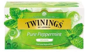 Twinings Pure Peppermint Herbal Infusi—n Peso neto 1.76 oz (0.07 oz x 25 bolsitas) / 1 caja.